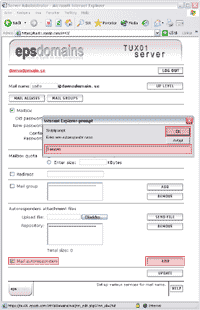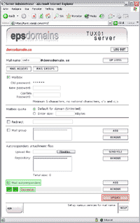 Du kommer nu tillbaka till "skapa e-postkonto"-sidan där Du bara konstaterar att autorespondern "Semester" nu finns inlagd. För att vid senare tillfälle ta bort automatsvaret klickar Du ur ruten "Mail autoresponder". Du kan också välja "Remove" vilket helt tar bort denna. Klicka på "Update" för att slutföra uppsättningen.
