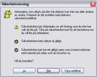 - Det kommer upp en "säkerhetsvarning" när jag ska logga in?